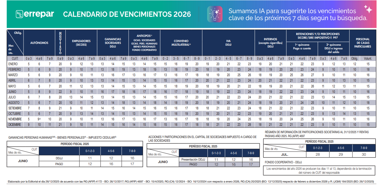 CALENDARIO DE VENCIMIENTOS 2022